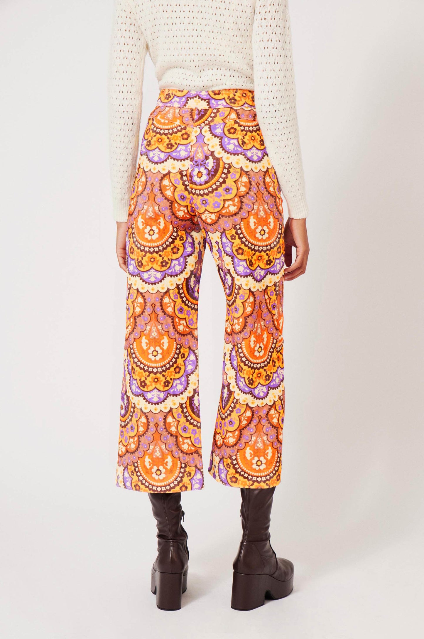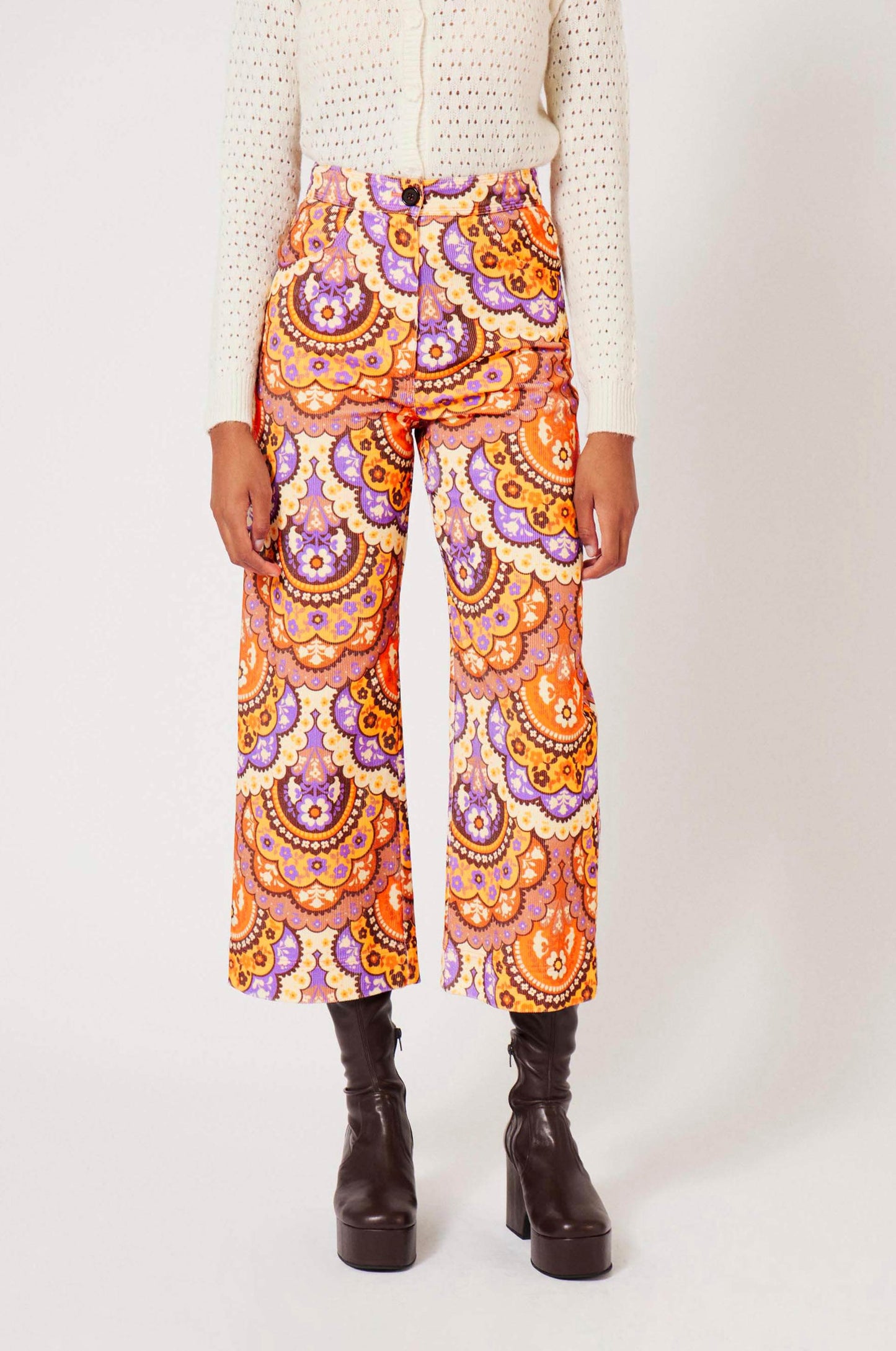 Pantalon droit à motif floral. 2 poches sur le devant. Fermeture par zip et bouton.